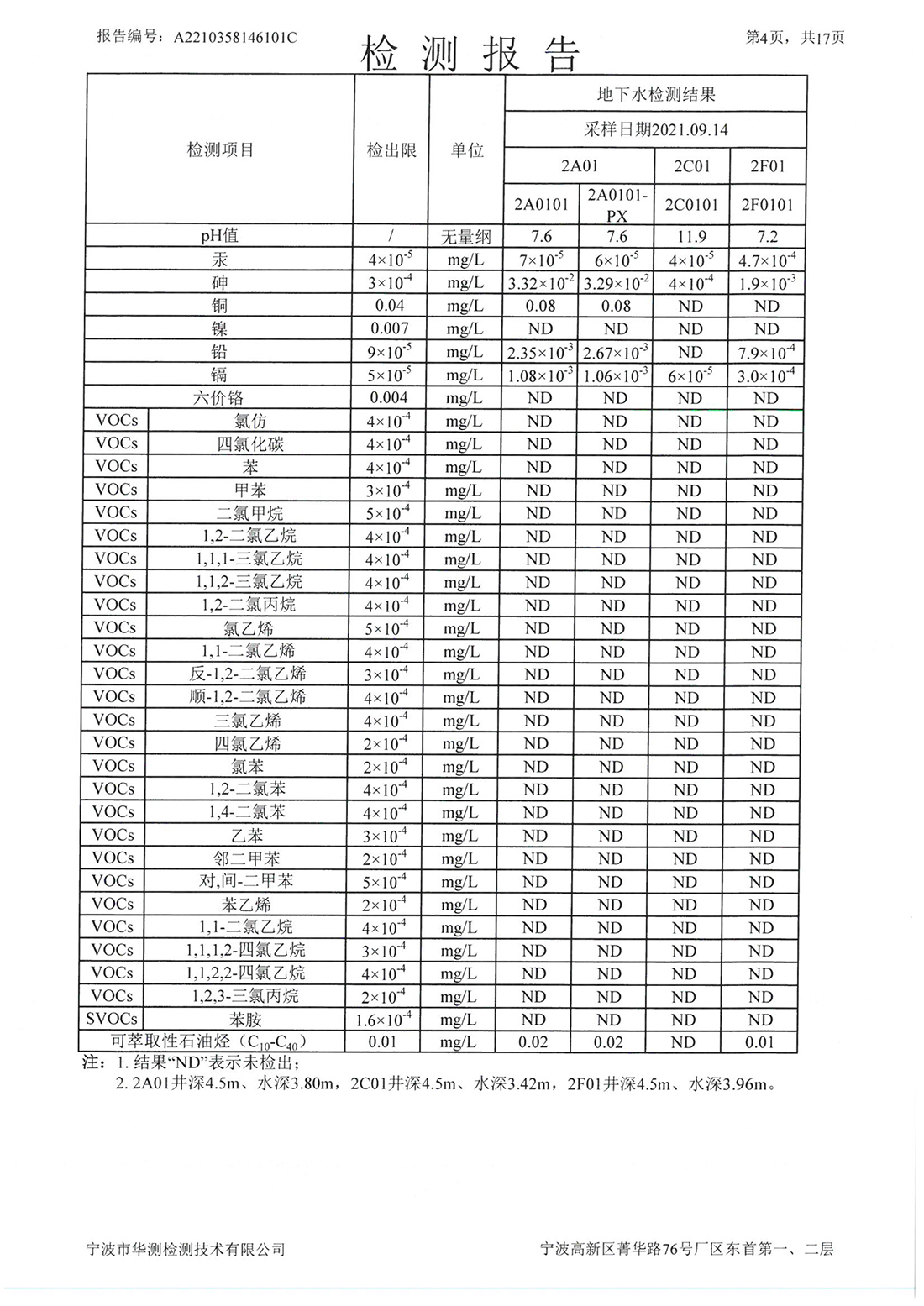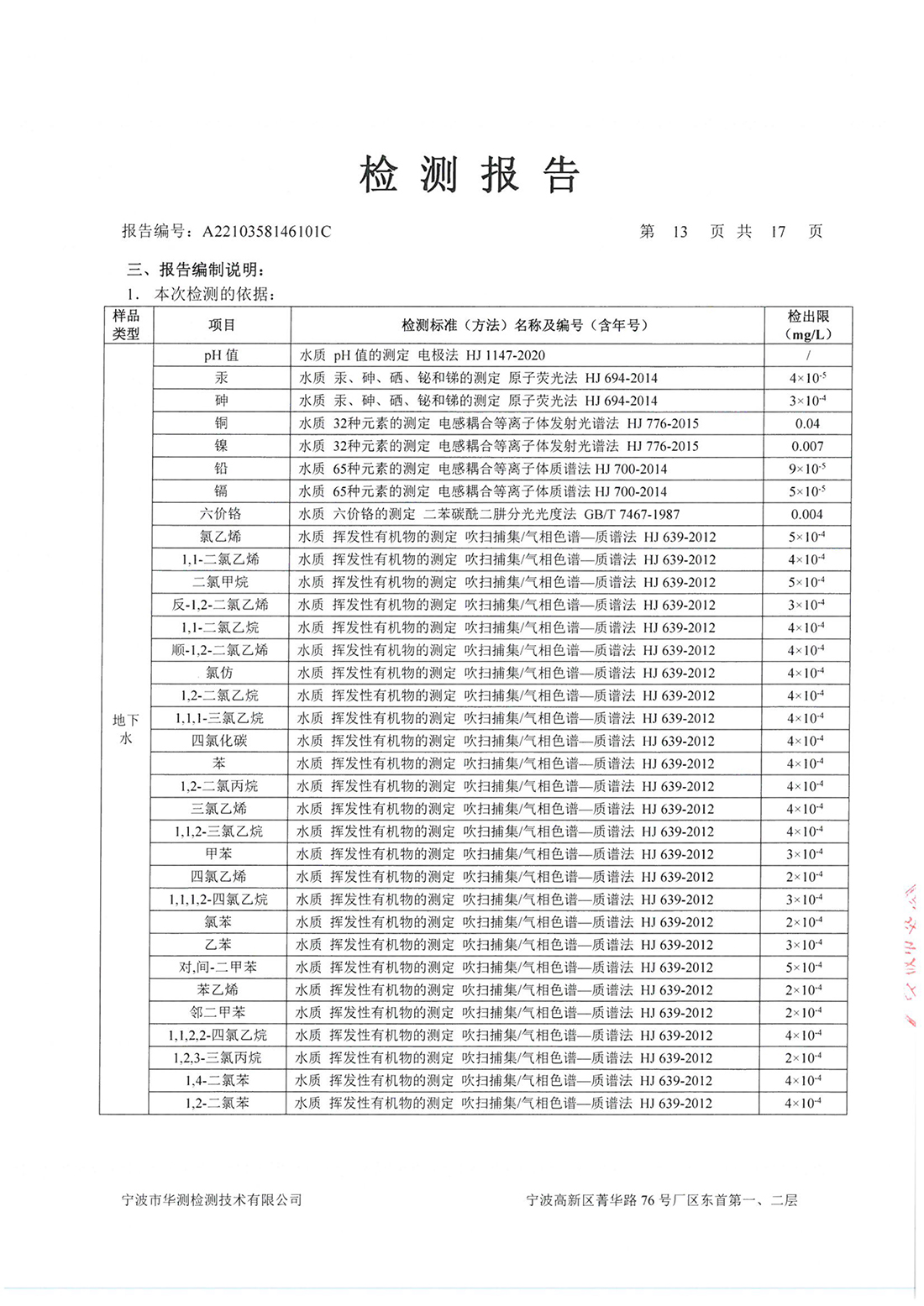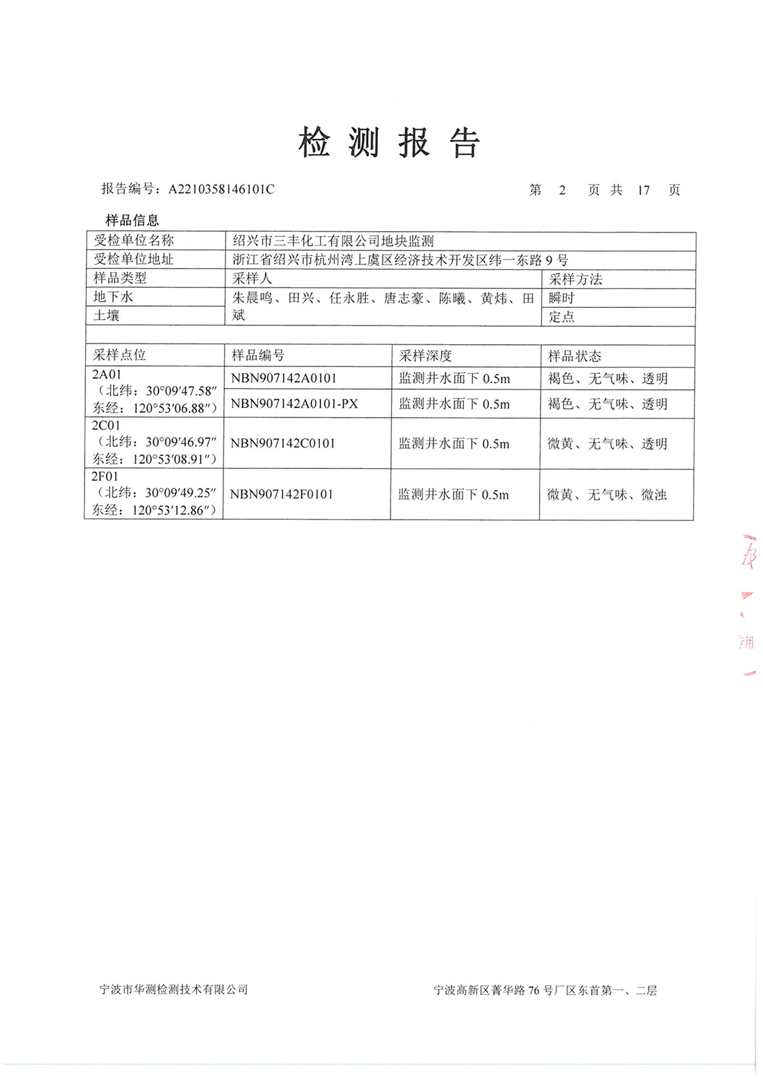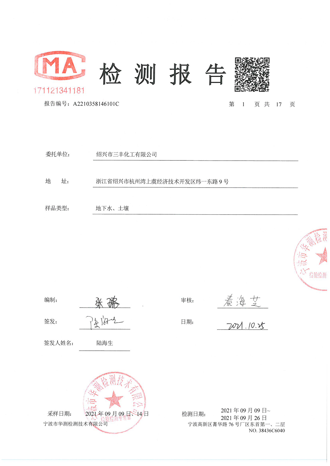 紹興市三豐化工有限公司地下水、土壤檢測報告