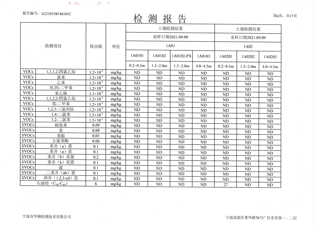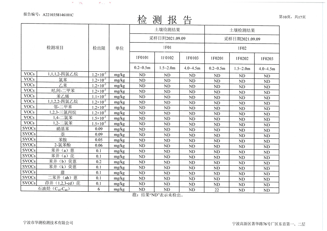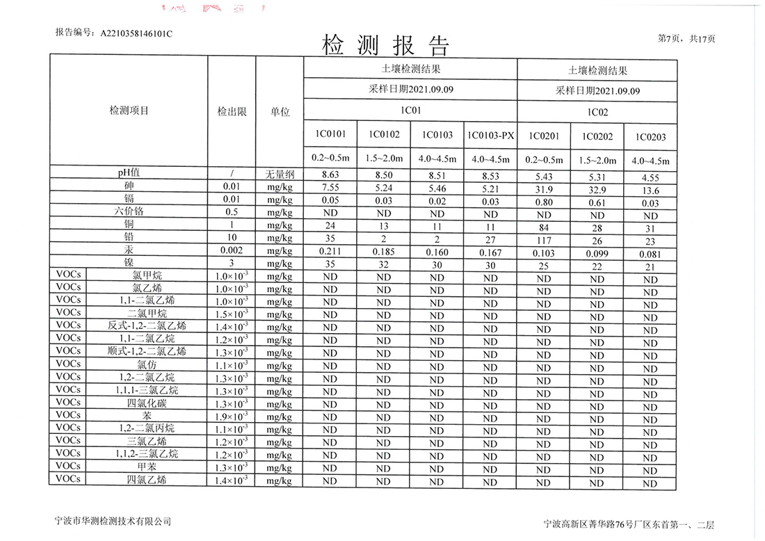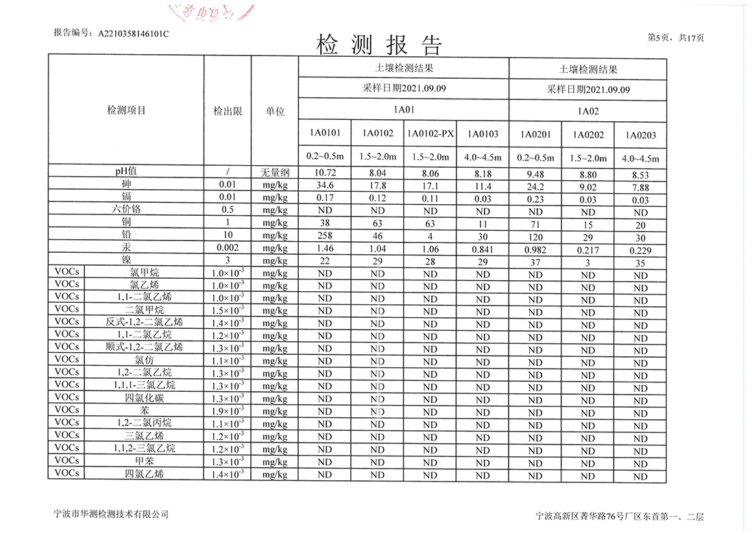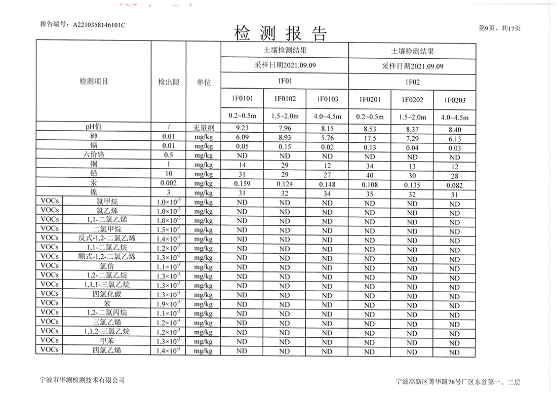 紹興市三豐化工有限公司地下水、土壤檢測報告