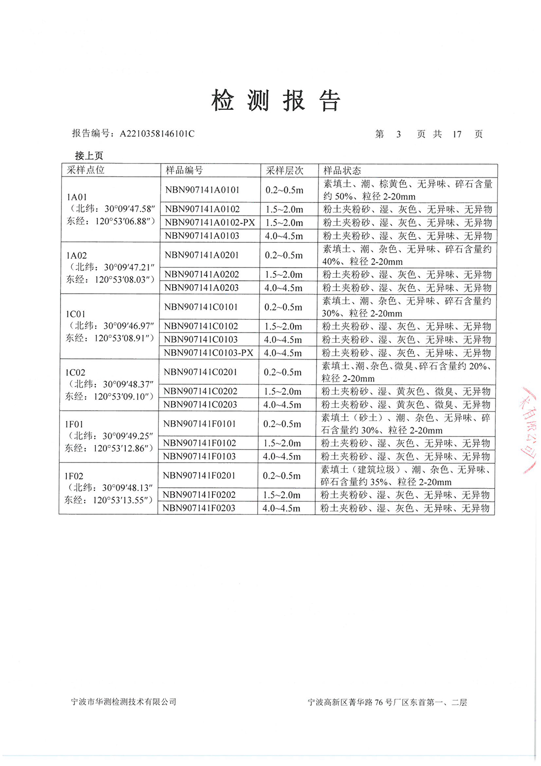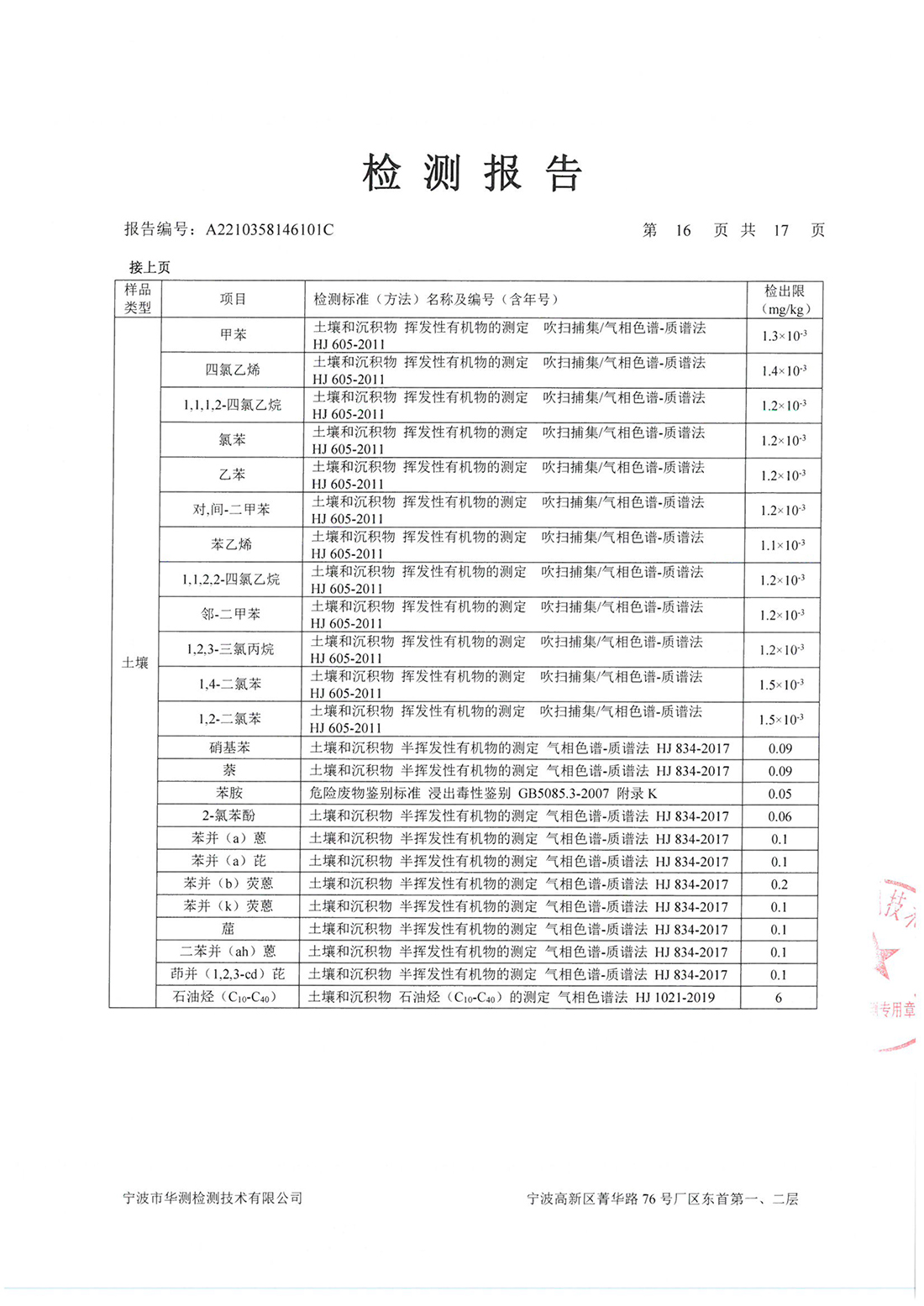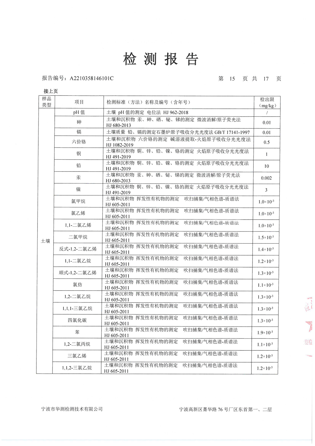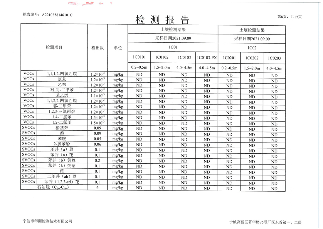 紹興市三豐化工有限公司地下水、土壤檢測報告
