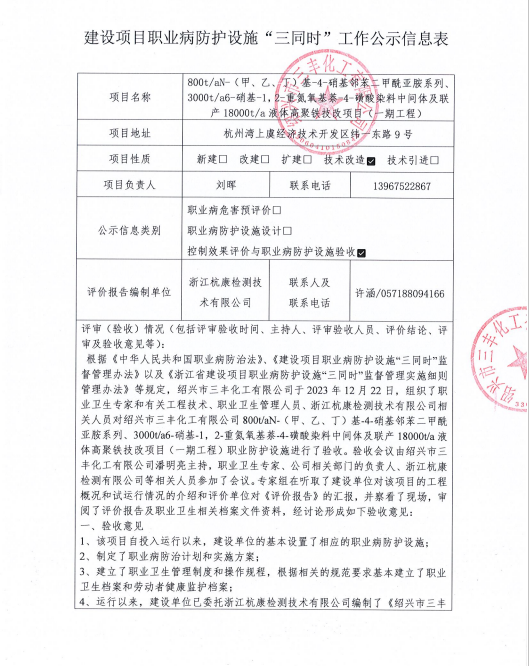 紹興市三豐化工有限公司年產(chǎn)3600噸高檔酸(中)性染料技改項目